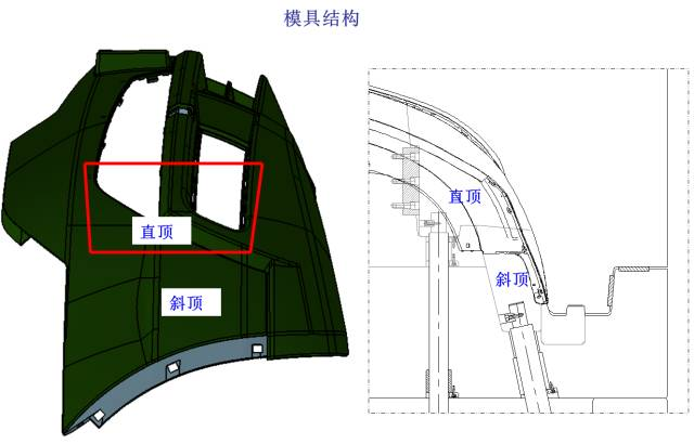 此側倒扣采(cǎi)用斜頂上斜頂的結構: